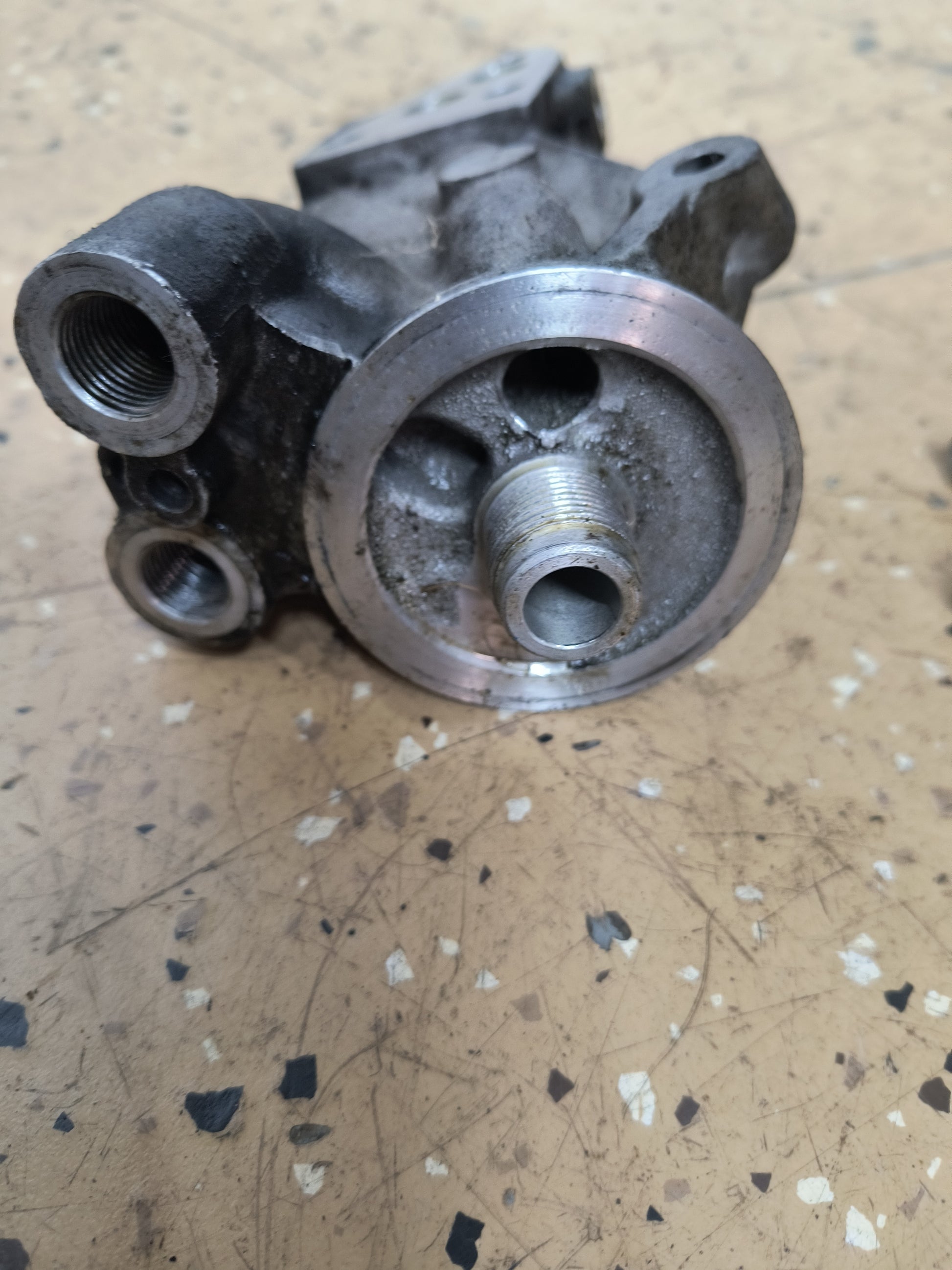 Great condition oil filter housing with hardware.